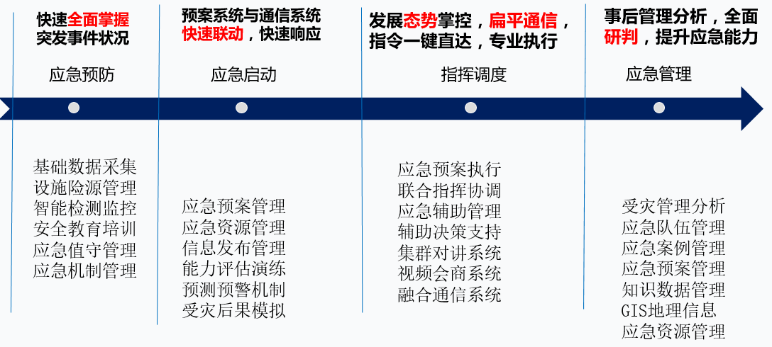 應急指揮平臺挑戰前所未有:工業化、城鎮化快速發展過程中,也會帶來高風險。我國自然災害頻發多發,安全生產基礎薄弱,防災減災救災體系不健全,全民防范意識不夠強,應急救援整體能力水平不夠高。因此,責任十分重大、任務十分繁重。