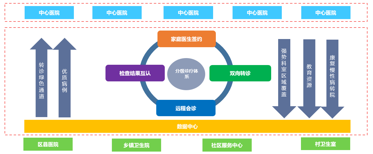 面向全省各級醫(yī)療機構,提供資源共享和業(yè)務協(xié)同能力,通過數(shù)據(jù)和醫(yī)療資源的連通、共享、協(xié)同,建設以家庭醫(yī)生為重要抓手的分級診療體系,構建醫(yī)療體形態(tài)。優(yōu)化社會醫(yī)療資源的合理分配,提高各級醫(yī)療機構診療水平。